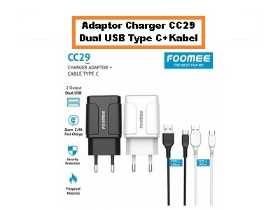 Adaptor Charger Foomee CC29 Dual USB Type C+Kabel